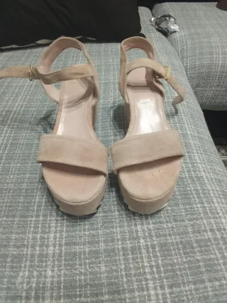 Sandalias plataforma de color beige y marrón. Son dos sandalias, ideales para el verano. - Tienen una plataforma cómoda. - Están fabricadas con materiales de calidad. - Se encuentran en buen estado. puestas en una ocasion. tallan pequeño