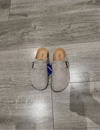 Zuecos Birkenstock en color beige. - Talla 39. - Comoletamente nuevo, con etiquetas y caja original. - Diseño con hebilla ajustable. - Plantilla de corcho. - Material exterior de ante.