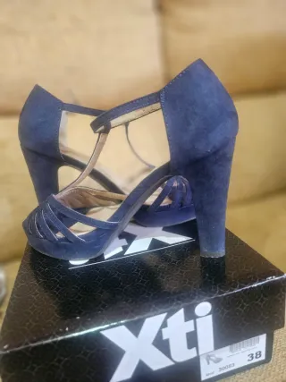 Elegantes sandalias de tacón Xti en color azul. - Diseño con tiras cruzadas en la pala. - Cierre de hebilla en la tira del tobillo. - Plataforma delantera.