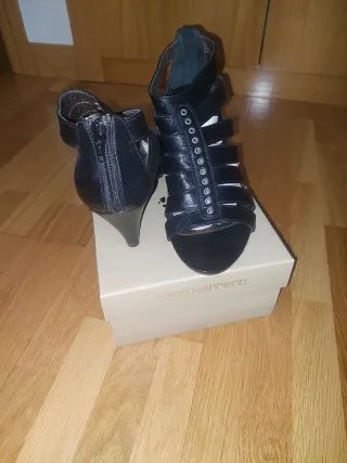 Elegantes sandalias de tacón de la marca Paco Herrero. Nunca usado Precio original 99€ - Diseño abierto con tiras. - Cierre de cremallera en el talón. - Detalle de tachuelas. - Tacón de aguja.