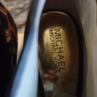 Elegantes sandalias de Michael Kors con un diseño único. - Combinación de ante negro y estampado animal. - Detalle de correa con hebilla dorada. - Punta abierta.