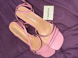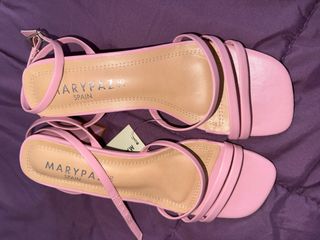 Sandalias de tiras finas en color rosa. - Diseño abierto. - Cierre con hebilla. - Suela cómoda. Nunca lo he usado pero por las mudanzas se ha ensuciado un poco pero nada que una lavada no pueda quitar.