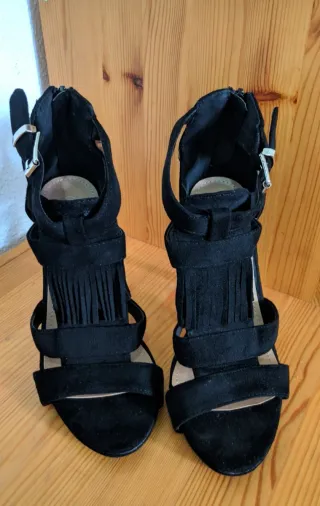 Sandalias de tacón negras Talla 39 ante,poco uso.