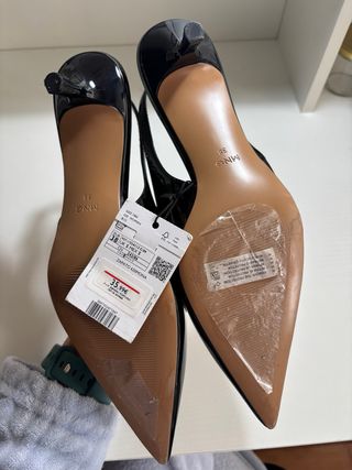 Sin estrenar. Con etiqueta. De charol negras y tacón bajo. Son de esta temporada.