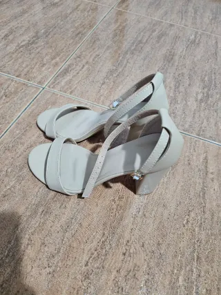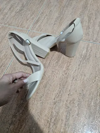 Elegantes sandalias de fiesta de Cortefiel. - De charol. Acabado brillante. - Tira con hebilla. - Diseño abierto en la punta. Solo las he puesto para una boda.