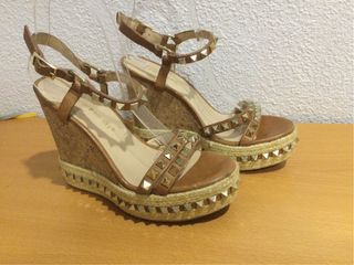Sandalias cuña tachuelas doradas marrón