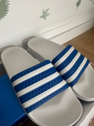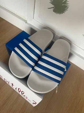 Chanclas Adidas Adilette Talla 38 blancas y azules