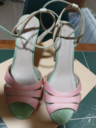 Sandalias sin estrenar de vestir con tacón fino de 8cm, con correa tipo pulsera atada al tobillo. Cualquier duda me podéis preguntar.