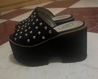 Sandalias de plataforma con tachuelas puestas dos veces.