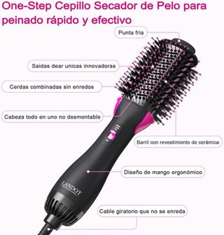 Seca y moldea tu cabello en un solo paso, ahorrando tiempo y logrando un acabado profesional desde casa Diseño Todo en Uno: combina secador y cepillo para un peinado rápido, cómodo y sin complicaciones. Tecnología lónica y Cerámica: reduce el frizz, sella la humedad y aporta un brillo intenso y natural. • Manejo Fácil y Ergonómico: diámetro de 60 mm para peinados perfectos con movimientos suaves y sin esfuerzo. Deslizamiento Suave: superficie cerámica que evita tirones y facilita el desenredado incluso con el cabello húmedo. Control Total: 3 temperaturas y 2 velocidades para adaptarse a las necesidades de tu cabello. Calidad y Durab