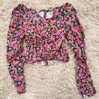Mono corto de mujer con un bonito estampado floral sobre fondo rosa. - Diseño con mangas cortas. - Cintura marcada. - Detalle de encaje en el bajo.