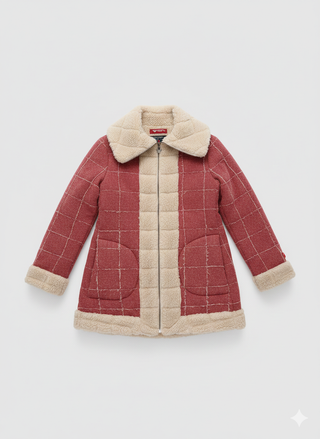 Abrigo de la marca Roxy en talla S. Presenta un diseño a cuadros con detalles en tejido sherpa. - Cuello con acabado sherpa. - Cierre de cremallera. - Bolsillos delanteros. - Puños y bajo con detalle sherpa.