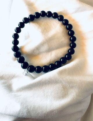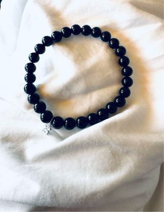 Elegante pulsera de la marca Tous, elaborada con cuentas de onix y detalles en plata. - Diseño con cuentas negras. - Colgante con detalle de plata.