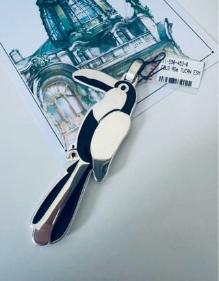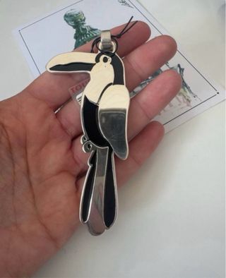 Este colgante de Tous, con diseño de loro, es una pieza vintage con un toque de color. - Diseño de loro. - Combinación de plata y negro.