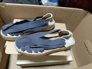 Zapatillas de verano con un diseño original. - Cuerda en la suela. - Lazos anchos en color azul. - Detalle de volantes en la puntera. Recogida en persona.