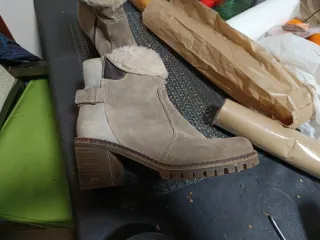 Botas de tacón con un diseño moderno y cómodo. - Material exterior de ante. - Forro interior de pelo sintético. - Tacón grueso y suela track. Recogida en persona.