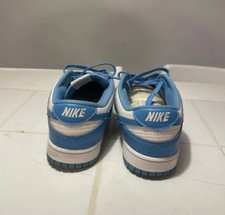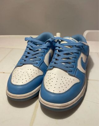 Zapatillas deportivas Nike Dunk Low en tonos azul y blanco. - Diseño clásico de caña baja. - Parte superior de cuero. - Suela de goma.