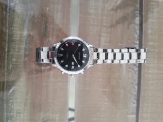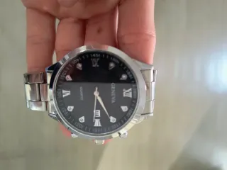 Elegante reloj Geneva con un diseño moderno y sofisticado. - Esfera negra con detalles plateados. - Correa de eslabones plateada. - Indicadores romanos y de puntos.
