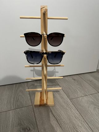 Práctico soporte de madera para organizar tus gafas. - Fabricado en madera. - Diseño de varios niveles para colgar gafas. Las gafas no se venden!