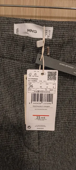 Pantalón de vestir de la marca Mango. - Diseño de tejido texturizado. - Cierre de cremallera y botón. - Bolsillos laterales.