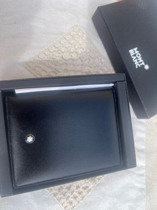 Elegante tarjetero de la marca Montblanc. - Diseño clásico y sofisticado. - Acabado en piel negra.