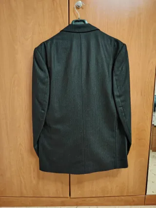 Elegante traje de chaqueta con un diseño de rayas verticales finas. Perfecto para ocasiones formales. - Chaqueta con cierre de botones. - Diseño de rayas verticales. - La medida de la chaqueta es de : 50 de largo ( sisa) 49 de hombros 62 de manga - La medida del pantalón es de: Yo mido 1'70 Regalo corbata. PRECIO NEGOCIABLE.