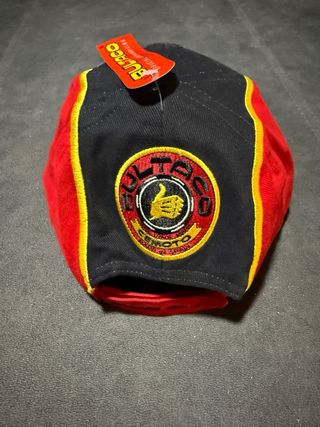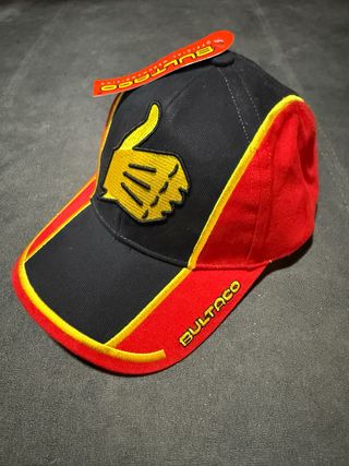 Gorra con diseño deportivo y llamativo. - Parche con pulgar hacia arriba. - Logo Bultaco bordado en la visera. - Detalles en amarillo y rojo.