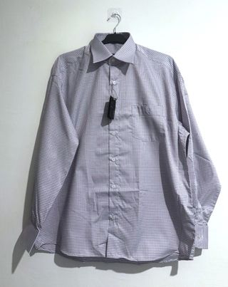 Camisa de manga larga con un discreto estampado de cuadros en color blanco y lila claro. Cuello clásico. Cierre de botones. Un bolsillo en el pecho. MEDIDAS Hombros: 56cm Pecho: 64cm Largo: 80cm Manga: 60cm