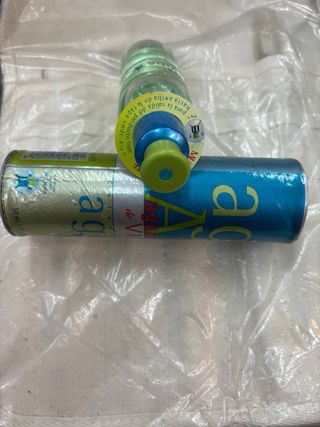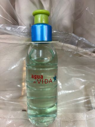 Colonia de la marca Agua de Vida. - Botella con diseño distintivo. - Líquido de color claro.