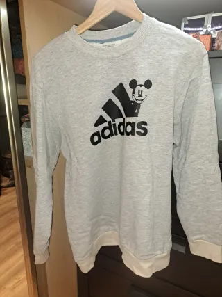 Sudadera gris con estampado de Mickey Mouse y el logo de Adidas. - Diseño con el icónico logo de Adidas. - Detalle de Mickey Mouse. - Manga larga.