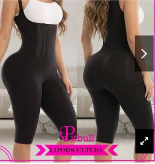 Faja postoperatoria de la marca Pitbull, sin uso. - Diseño tipo body. - Cierre frontal con broches. - Cobertura hasta la rodilla. - Tirantes anchos.
