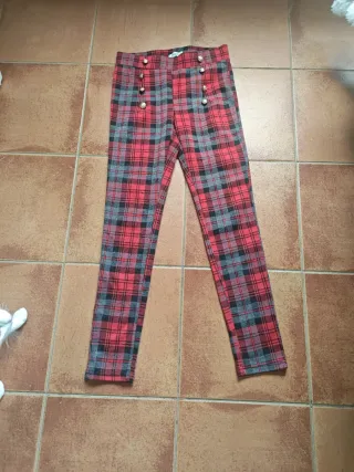 Pantalones a cuadros rojos y grises