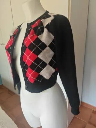 Chaqueta corta cuadros argyle negra y roja