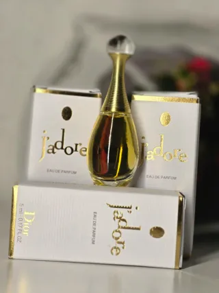Set de mini perfumes Dior J'adore Eau de Parfum. - Incluye 3 unidades. - Cada unidad contiene 5 ml (0.17 FL.OZ). - Diseño elegante con detalles dorados.