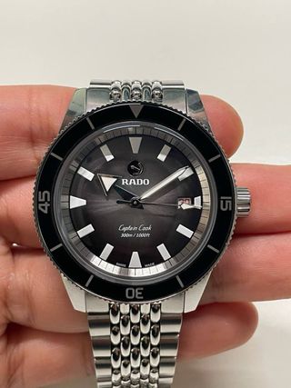 Sígueme en Instagram! @lawatch.es ¡¡ENVÍOS EL MISMO DÍA!! 📲✅ Envío más vídeos por WhatsApp Opción de envío certificado gratis mediante transferencia, bizum o PayPal. ⏰ Reloj RADO Capitán Cook fullset 42mm 42mm con cristal de zafiro, color grisáceo con la típica ancla en morado, de entrada fullset. Referencia R32105153 Se vende tal cual se ve en las fotos No busco cambios. Más relojes en mi perfil! Seiko,orient,tissot,invicta,casio,swatch,oris,Rolex,omega,Tag Heuer,Montblanc,Tudor,venezziano,longines,hamilton,citizen