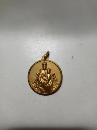 Medalla religiosa con la imagen de la Virgen y el Niño. - Diseño en relieve. - Colgante con asa para cadena.