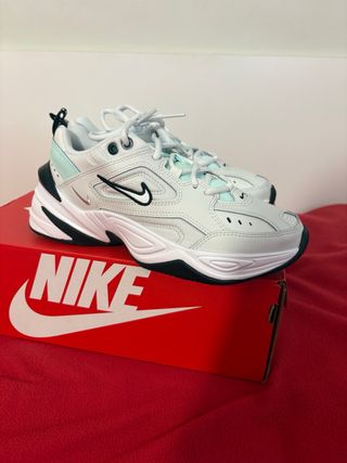 Zapatillas Nike M2K Tekno en blanco con detalles en verde menta. Un diseño moderno y cómodo. Talla 38 - Combinación de materiales en el exterior. - Suela gruesa y robusta. - Cierre con cordones.