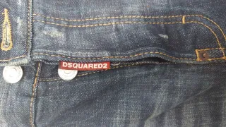 Vaqueros de la marca DSQUARED2 con un diseño llamativo. - Bordado de samurái en las perneras. - Lavado desgastado y detalles de pintura. USADOS PERO EN BUEN ESTADO