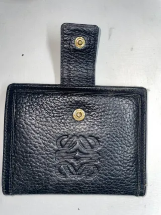 Elegante cartera de la marca Loewe en color negro. Presenta un diseño clásico y funcional. - Elaborada en piel texturizada. - Cierre de botón a presión. - Detalle del anagrama de Loewe grabado en relieve.