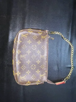 Bolso pequeño con el icónico estampado Monogram de Louis Vuitton y detalles en dorado. Bolso de la década de los 80 - Estampado Monogram. - Cadena dorada. - Cierre de cremallera.