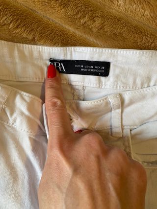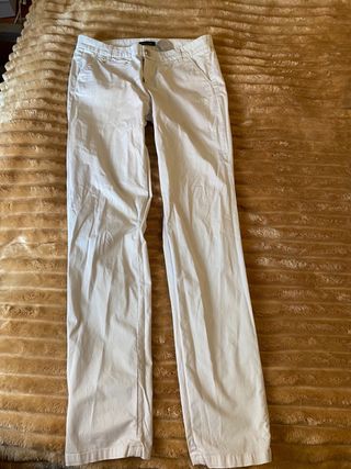 Pantalón de mujer de corte recto en color beige. - Talla 34 de ZARA - Cierre de cremallera y botón. - Bolsillos delanteros y traseros.