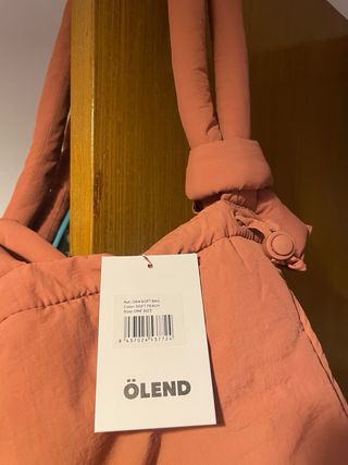 Bolso moderno de la marca Ölend en color naranja. - Diseño acolchado. - Asas cómodas. - Cierre de cordón.