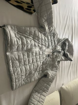 Chaqueta acolchada con capucha. - Diseño acolchado en rombos. - Cierre de cremallera frontal. - Bolsillo lateral con cremallera. - Detalle de texto estampado en el pecho.
