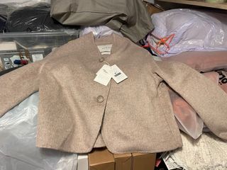 Pantalón de vestir de mujer de Zara en color beis - Corte recto. - Tejido con textura Talla 34, como nuevos