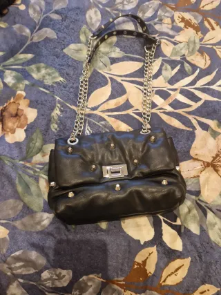 Bolso de mano o de hombro con pinchos. En perfecto estado. - Cierre metálico. - Cadena plateada. - Detalles de pinchos metálicos. Precio: 10€