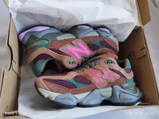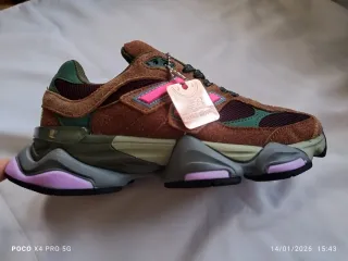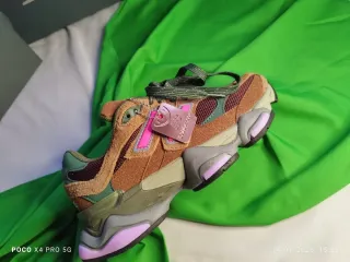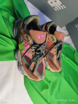 Zapatillas New Balance con un diseño moderno y llamativo. - Combinación de colores marrón, rosa y verde. - Detalle de logo 'N' en rosa. - Suela con tecnología ABZORB.