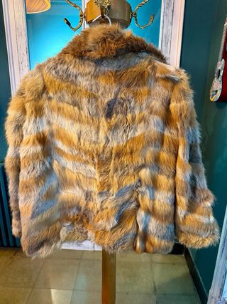 Chaqueta vintage de piel natural de zorro. Colores cálidos en tonos miel, beige y gris. Pelo denso y suave. Corte corto. Forro interior satinado. Pieza llamativa. Ideal para looks de invierno o estilismos especiales. Tiene mucha presencia puesta. Estado Buen estado general para su edad. Tiene un pequeño desperfecto en una costura interior. Necesita una simple reparación de costura.Se ve en la última foto. Por eso el precio está ajustado. Talla M Venta consciente Es piel real de zorro. Pieza vintage. No producción actual.