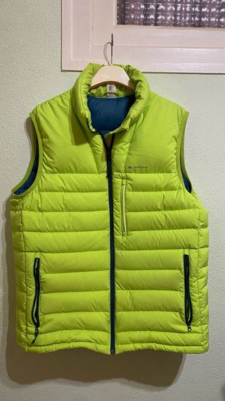 Chaleco acolchado Quechua (Decathlon) en color verde/amarillo, talla L/XL. Ligero, abrigado y muy práctico para actividades al aire libre o uso diario. Perfecto para senderismo, viajes o como capa adicional en otoño e invierno. En estado como nuevo, muy poco uso, sin defectos. ✔ Ligero y funcional ✔ Color llamativo y moderno ✔ Ideal para outdoor o uso diario