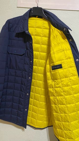 Chaqueta acolchada original de Purificación García, color azul marino, talla L. Diseño elegante y atemporal, ideal tanto para uso diario como para un look más arreglado. Ligera pero abrigada, perfecta para otoño e invierno suave. Se encuentra en estado impecable, sin manchas, rozaduras ni signos de uso. Cremallera y costuras en perfecto estado. ✔ Marca premium ✔ Corte cómodo y favorecedor ✔ Muy cuidada, lista para usar