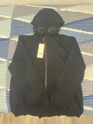 Chaqueta CP Company con capucha y el icónico diseño de gafas. - Color negro. - Cierre de cremallera. - Logo de CP Company bordado en el pecho.
